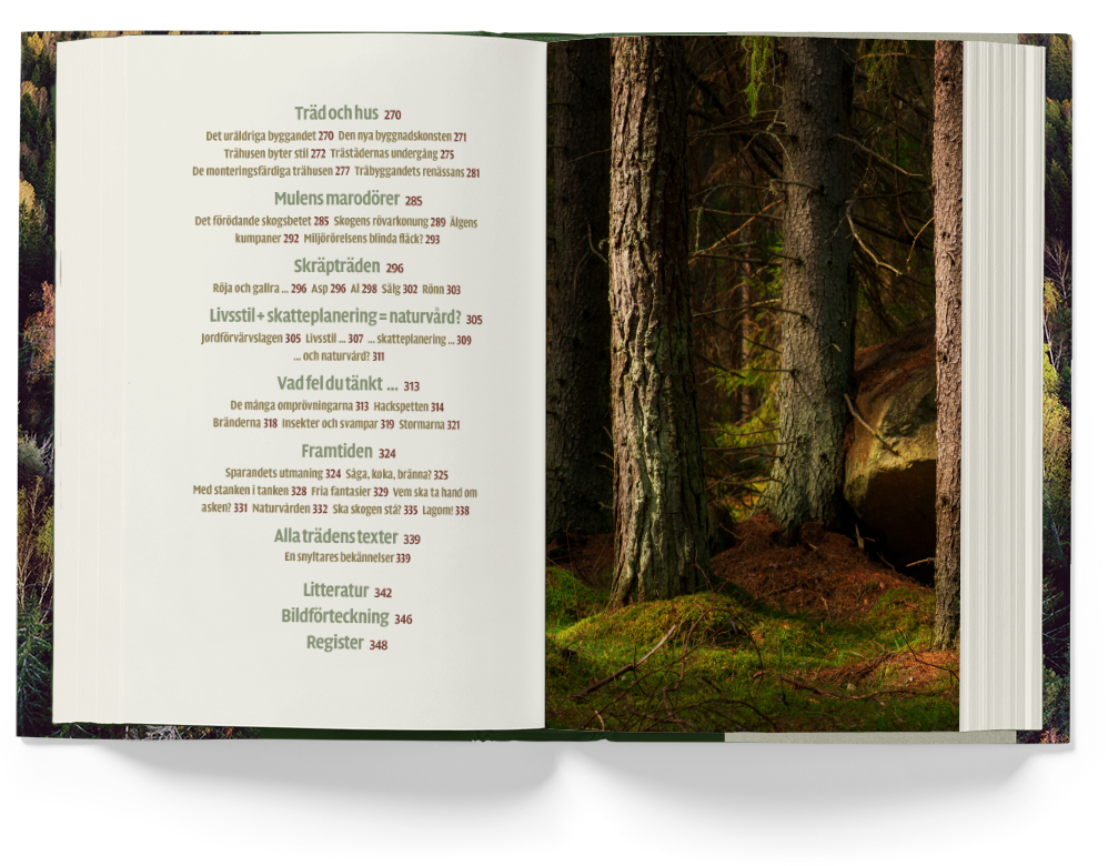 Design (cover and insert) of Träd – en vandring i den svenska skogen by Gunnar Wetterberg, for Albert Bonniers Förlag 2018.